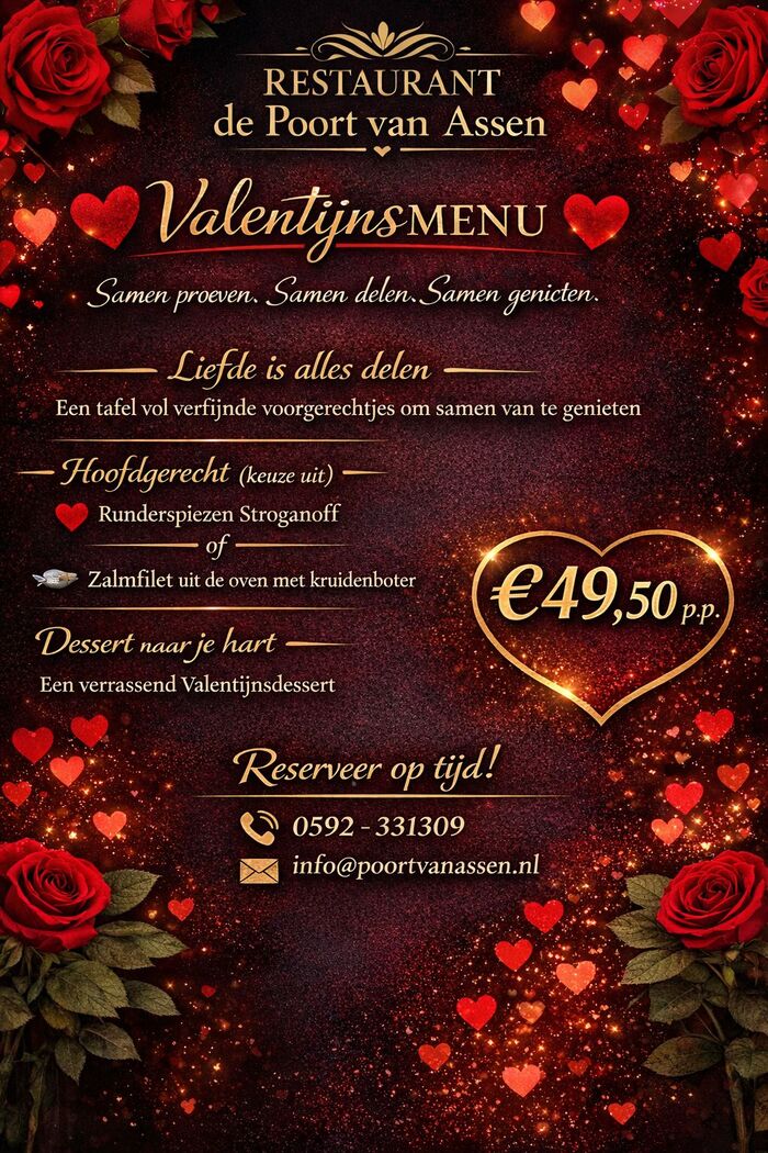 Wij heten u graag van harte welkom bij een bezoek aan De Poort van Assen voor een heerlijke lunch of sfeervol diner, waarbij wij er alles aan doen om dit tot een echt genieten te maken.